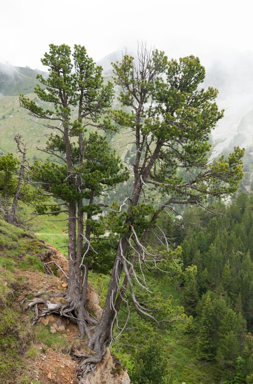 Les cônes ne s’ouvrant pas d’eux-mêmes, des animaux vont intervenir. C’est le cas du casse-noix mouchetée qui, de son bec puissant, décortique les cônes pour en récupérer les graines. Celles qui ne seront pas récupérées par l’oiseau au cours de l’hiver germeront. L’arole est le seul pin européen à aiguilles par 5. Le seul autre pin à aiguilles par 5 de nos régions (le pin Weymouth) est une espèce introduite que l’on ne rencontre pas en altitude. Souvent en limite supérieur de forêt, le pin cembro est le dernier arbre que l’on rencontre et, dans cette zone de combat, il arbore généralement une forme particulière dite en candélabre (fût tortueux avec de fortes branches étalées).