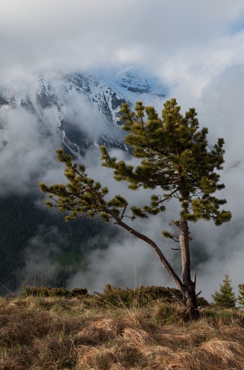 Proche parent du pin sylvestre (Pinus sylvestris), dont il prend le relais en altitude lorsque celui-ci s’essouffle, le pin à crochets se distingue par son écorce gris-brun foncé et par ses cônes composés d'écailles formant un crochet caractéristique.