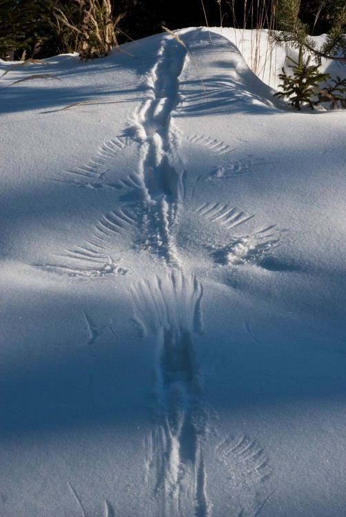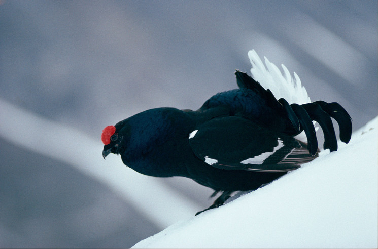 Le tétras lyre, aussi appelé « petit coq de Bruyère » fait partie de la famille des galliformes. D'une taille équivalente à une poule, le mâle possède un plumage noir à reflets bleus. La queue se termine en forme de lyre. La femelle plus discrète s'habille de brun et roux. En hiver, il s'enfonce dans la neige pour éviter le froid nocturne. Il peut passer de longues périodes dans cet igloo s'il fait mauvais temps. Un mâle peut s'accoupler avec plusieurs femelles.