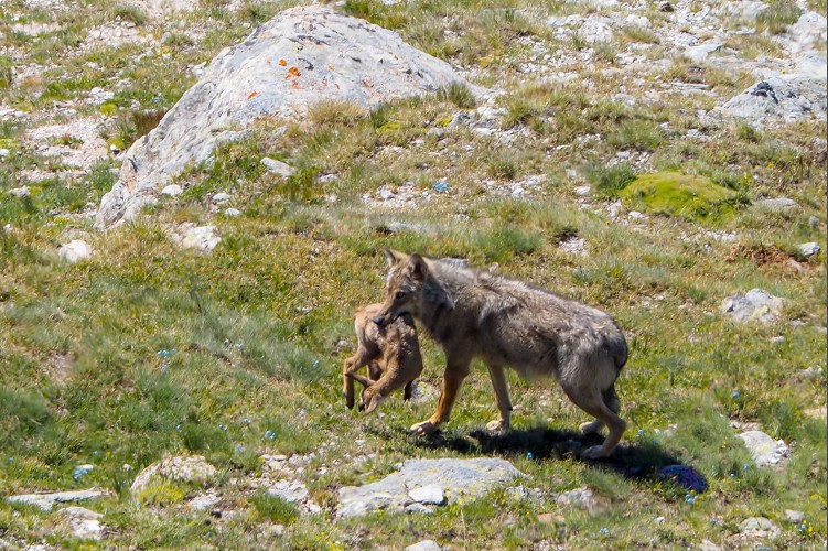 Le loup est le canidé le plus grand (hormis certaines races de chiens domestiques) présent sur notre territoire. Les animaux français, de lignée italienne, sont gris et roux, pesant une trentaine de kilos. Seule l'observation d'un certain nombre de critères précis, permet la distinction certaine avec son proche parent, le chien. Ses oreilles arrondies, son port de queue tombant, son aspect haut sur membres sont des éléments favorables.