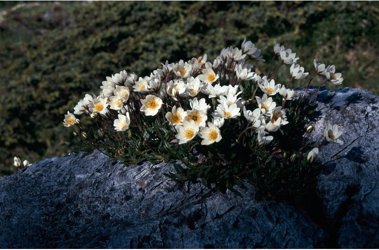 Sous arbrisseau formant de petits tapis denses. Ses feuilles sont dentées et ressemblent à de petites feuilles de chêne. Ses fleurs blanches se caractérisent par son nombre de pétales qui doit être de huit mais, attention, ce n'est pas toujours le cas... La dryade pousse en altitude et apprécie les situations de crêtes ventées.